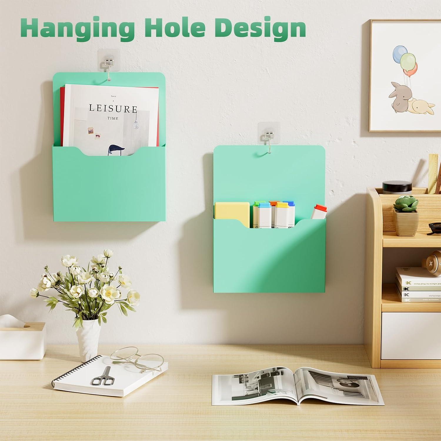 Magnetic File Holder – Magnetic Paper Holder, Pocket Organizer Office Supplies Storage Mail Organizer for Notebooks,Planners,Letter (Blue)(Green Holder-2L)