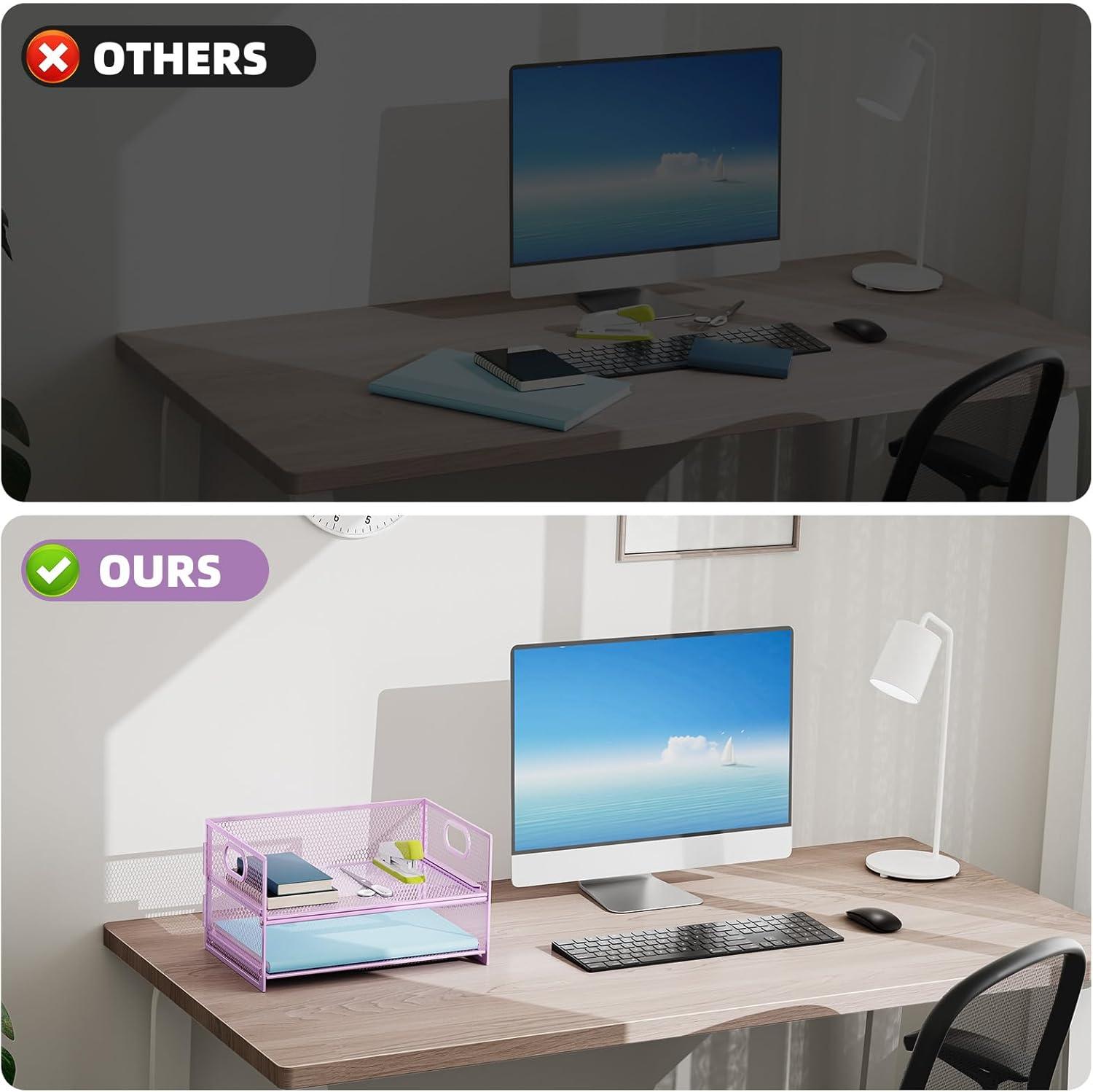 Marbrasse 2 Tier Paper Organizer Letter Tray, Mesh File Organizer with Handle, Paper Sorter Desk Organizer for Home Office Supplies – Black(2 Tier Pink)