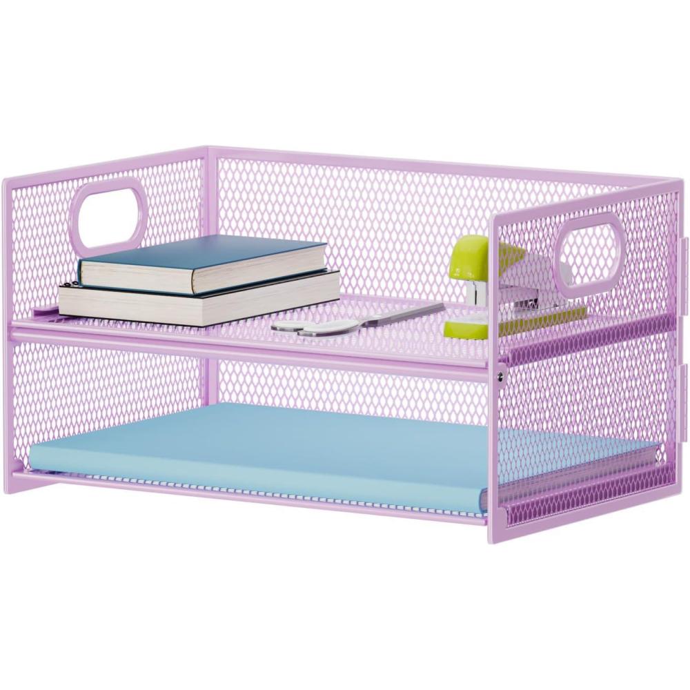 imageMarbrasse 2 Tier Paper Organizer Letter Tray Mesh File Organizer with Handle Paper Sorter Desk Organizer for Home Office Supplies  Black2 Tier Pink