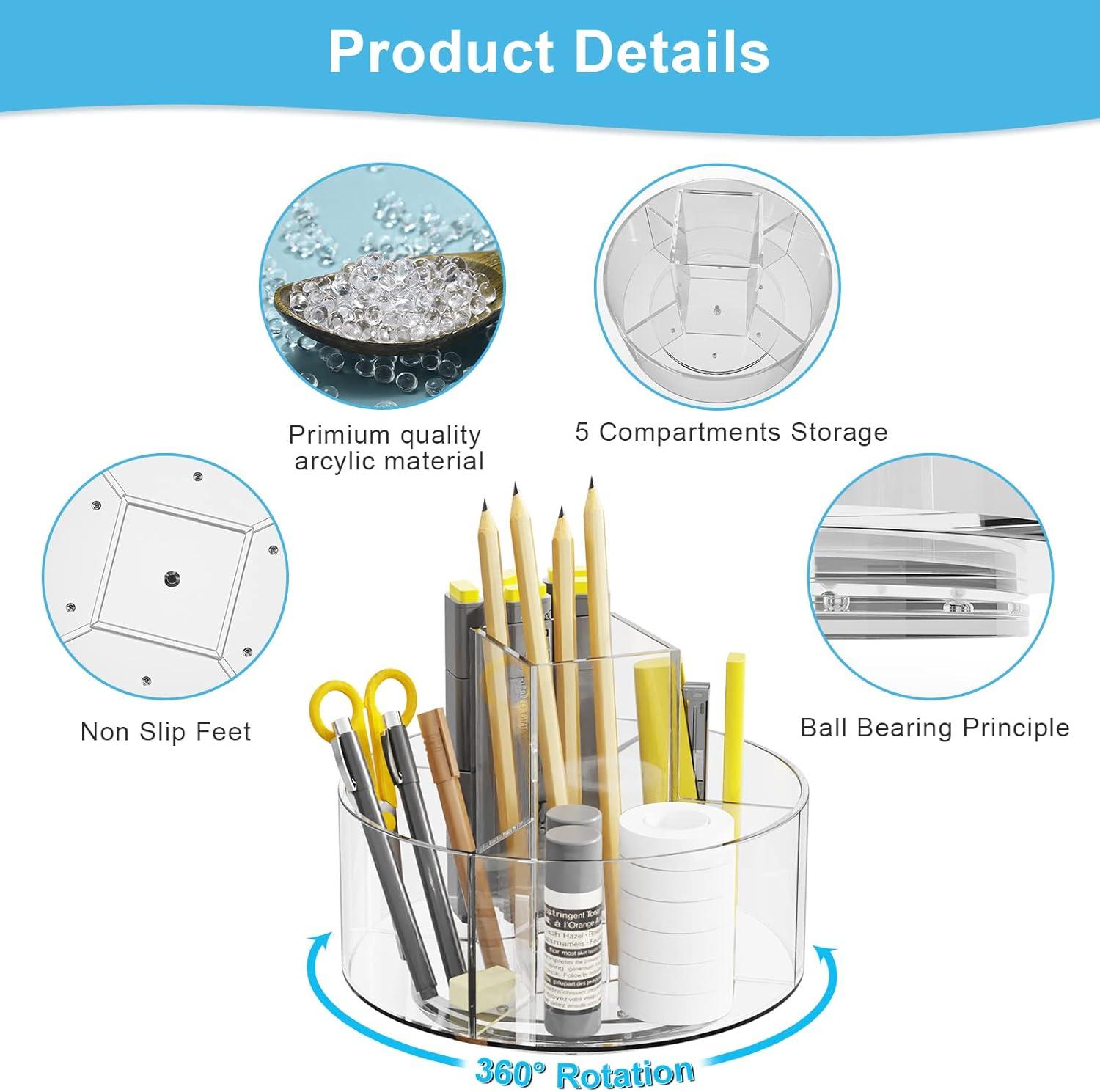 【360 DEGREE SPINNING DESIGN】 Featuring a 360°rotating design with a handy handle, this desktop organizer can be turned smoothly to get to each compartment and organize your items by type. Keeps everything neatly organized and at your fingertips