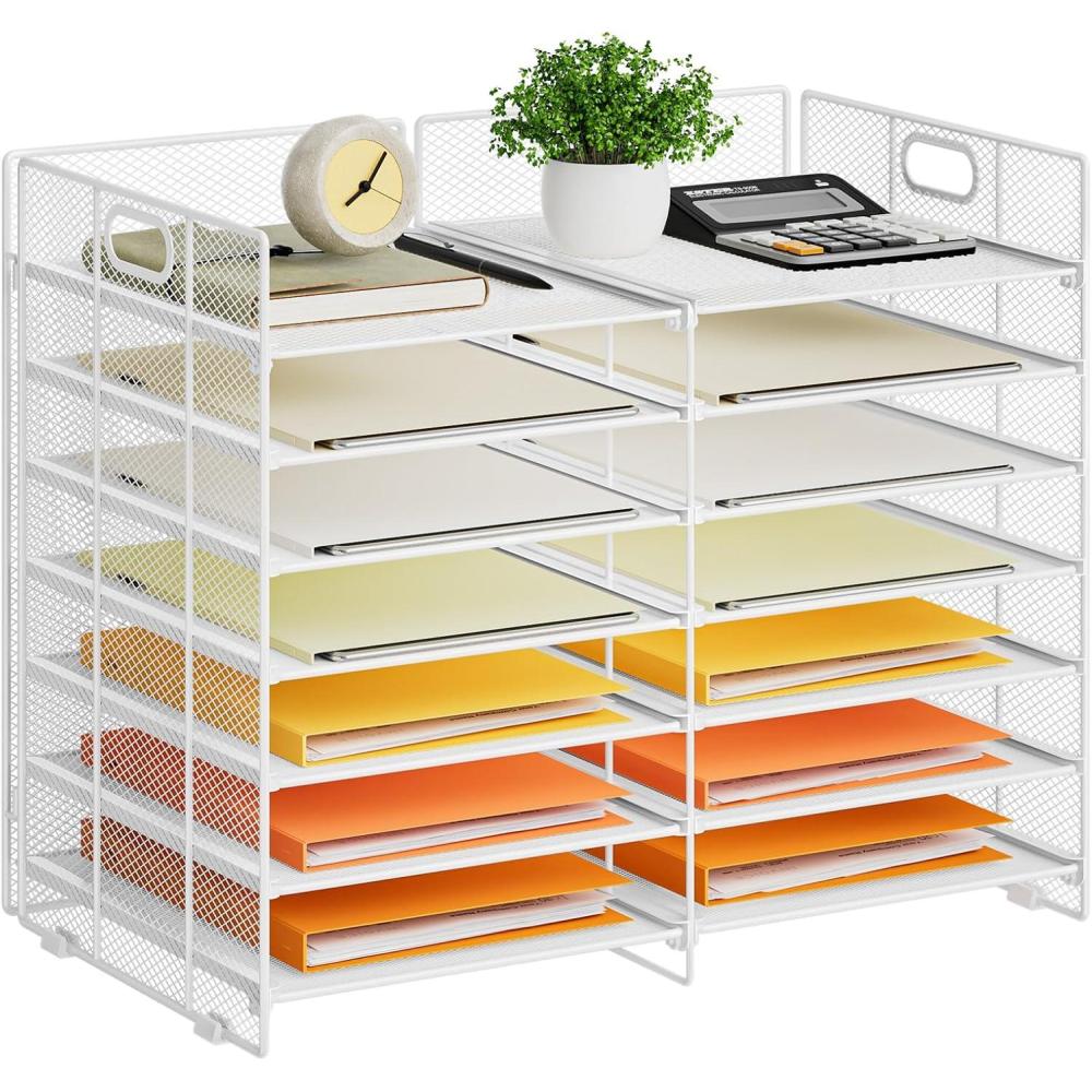 【Extra large capacity】Mesh mail organizer countertop amazing storage capacity and space-saving design. With a total of 12 compartments, it helps you quickly and easily sort, store and organizer literature, magazines, comic books, files, student work, binders, catalogs, diaries, documents and files on your desk or counter, giving you back valuable workspace.